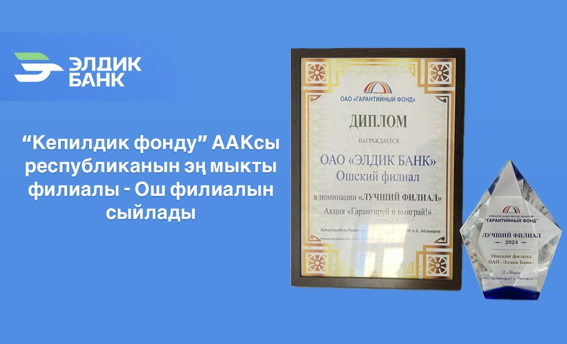«Кепилдик фонду» ААКсы республиканын эң мыкты филиалы – «Элдик Банк» ААКсынын Ош филиалын сыйлады.
