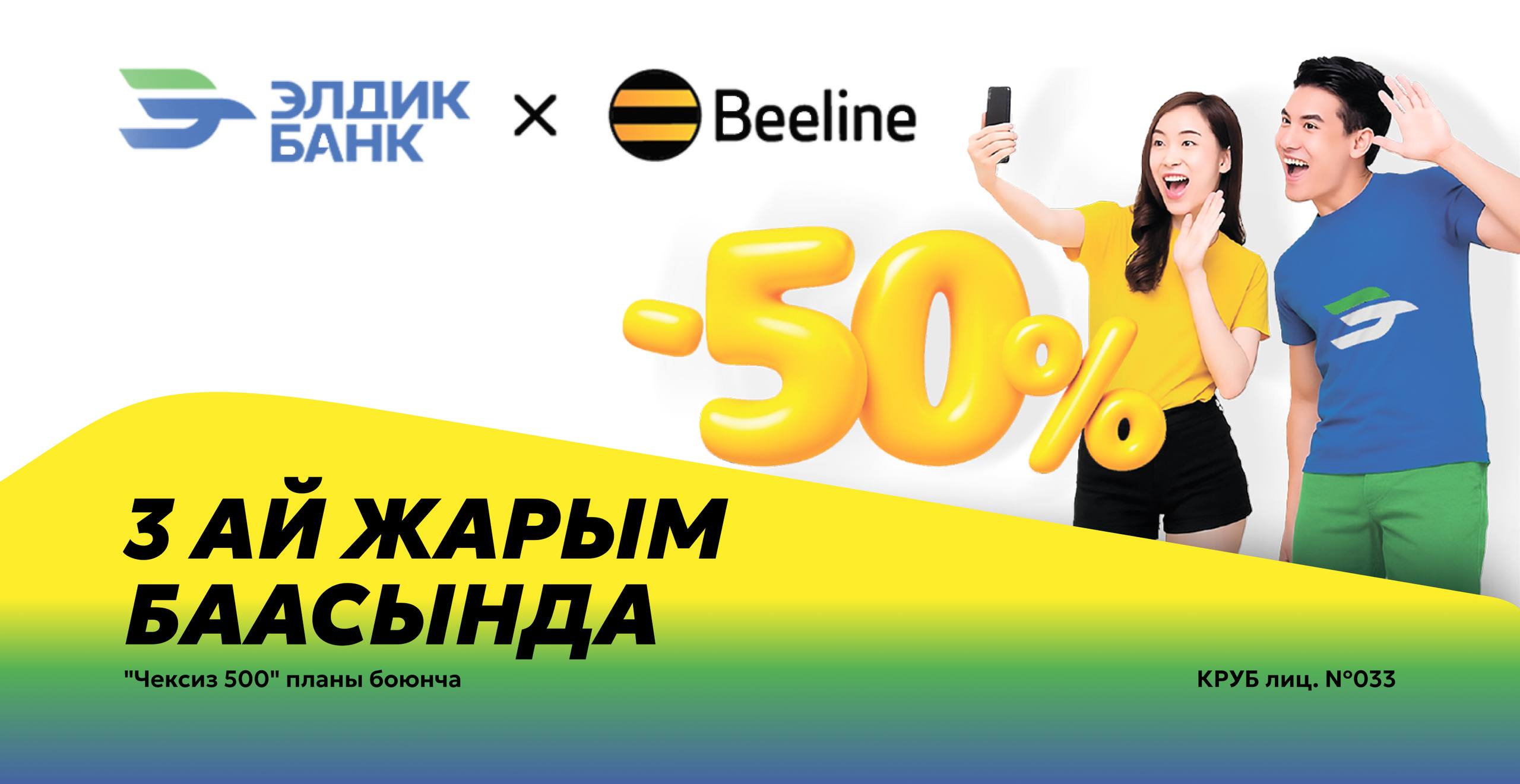 Элдик Банктан Beeline SIM-карта сатып алганда «Чексиз 500» тарифине 50% арзандатуу
