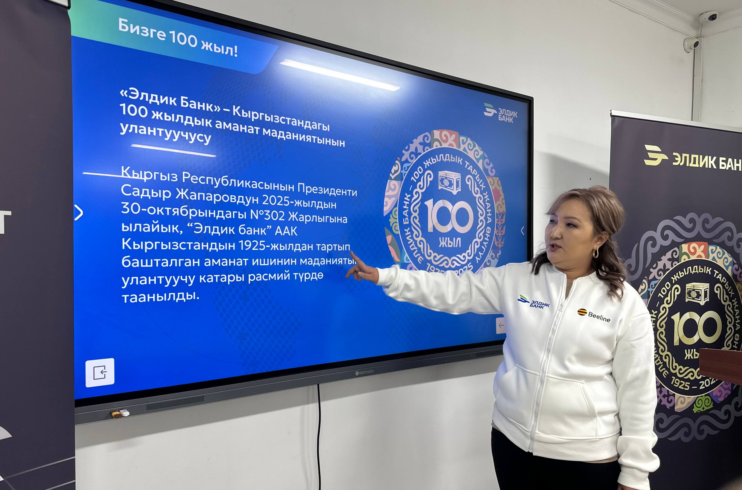 «Элдик Банк»тын эксперттери Кыргыз Республикасынын Улуттук банкынын өкүлдөрү менен биргеликте интерактивдүү сабактарды өткөрүп, студенттердин суроолоруна жооп беришти. Эң активдүү катышуучуларга эстелик белектер тапшырылды. Улуттук демилге өлкөнүн башка аймактарында да ишке ашырылат.
