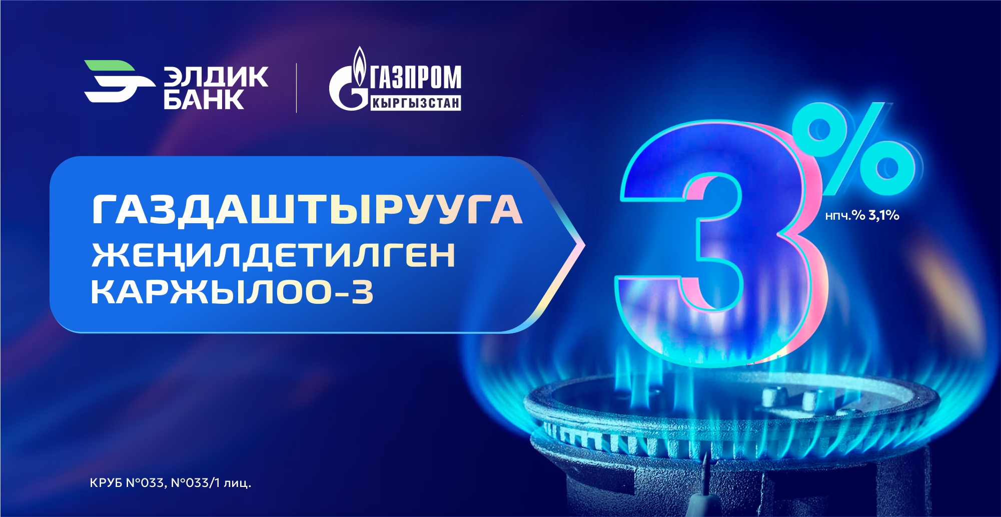 Элдик Банктан 3% менен газдаштыруу мүмкүнчүлүгү