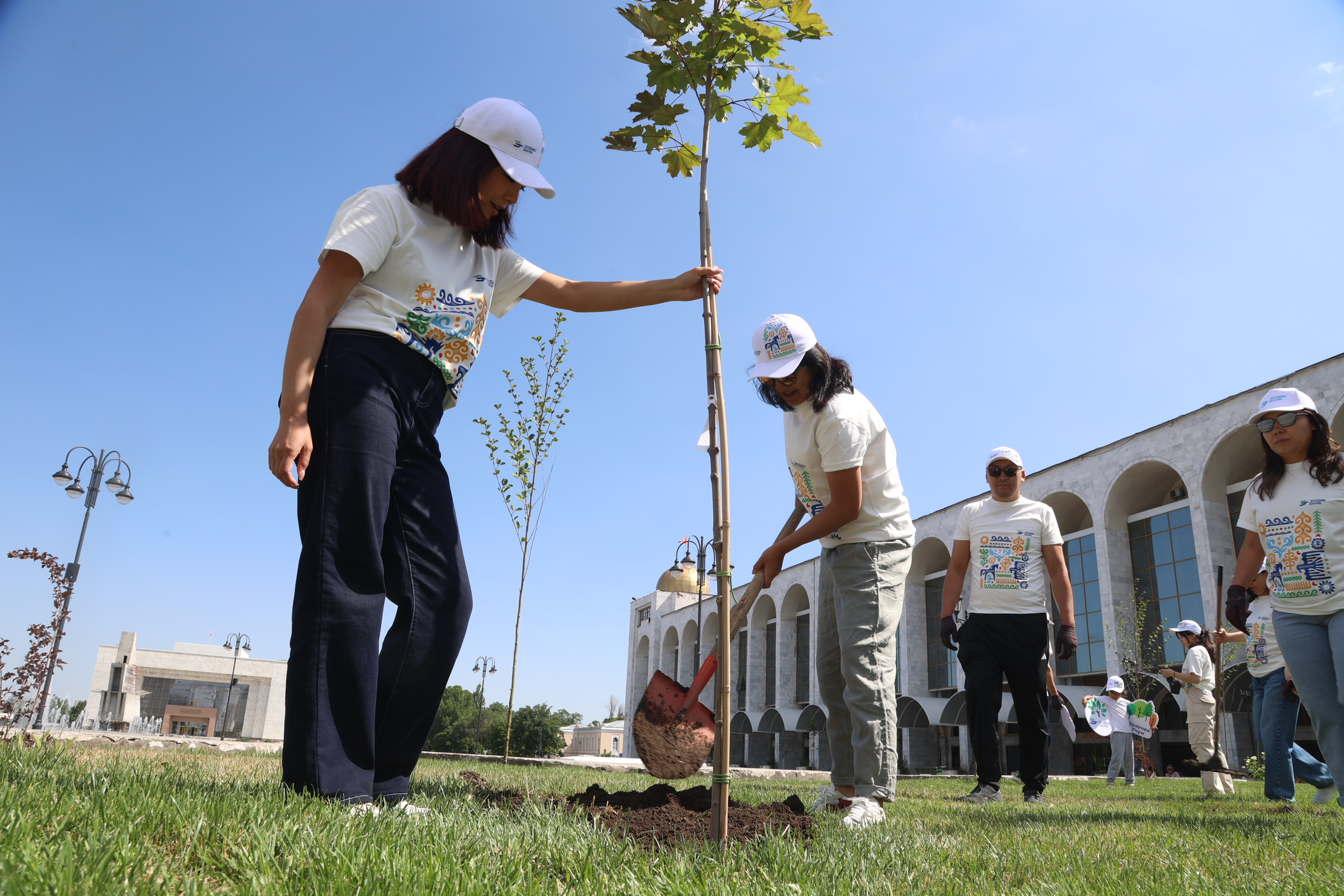 Элдик Банктын жамааты Алатоо аянтына клен отургузушту