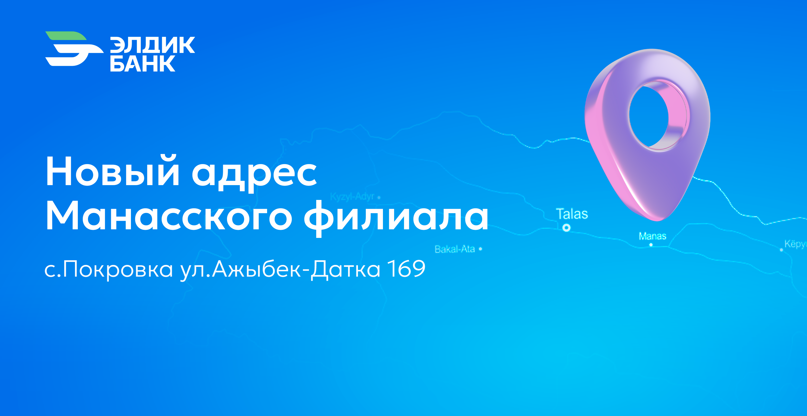 Информируем, что Манасский филиал с 16 января 2025 года переехал на новый адрес: